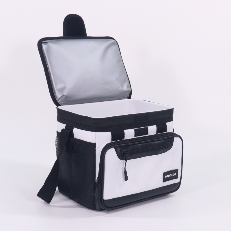 Ramping, andal, dan serbaguna — tas pendingin berinsulasi hitam putih ini dirancang untuk para profesional yang mengutamakan performa tanpa mengorbankan penampilan. Desain dua warna minimalisnya memberikan tampilan yang bersih dan modern, sehingga ideal untuk pengantaran makanan, penggunaan karyawan, atau promosi merek.