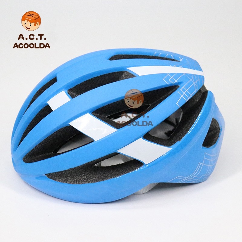 Helm setengah biru dengan lubang ventilasi untuk pengantar makanan. Ringan, bernapas, dan dapat disesuaikan dengan logo, warna, dan ukuran. Sempurna untuk pesanan massal dengan pengiriman cepat.