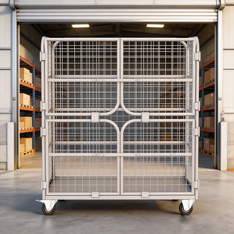 WL-RC-005 adalah sangkar gulir logistik berukuran 1100×800 mm yang aman, terbuat dari jaring penuh, dengan pintu yang dapat dilepas dan alas yang diperkuat, dirancang untuk penyortiran dan kustomisasi gudang B2B yang aman.