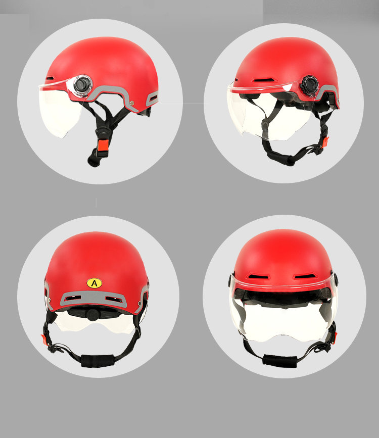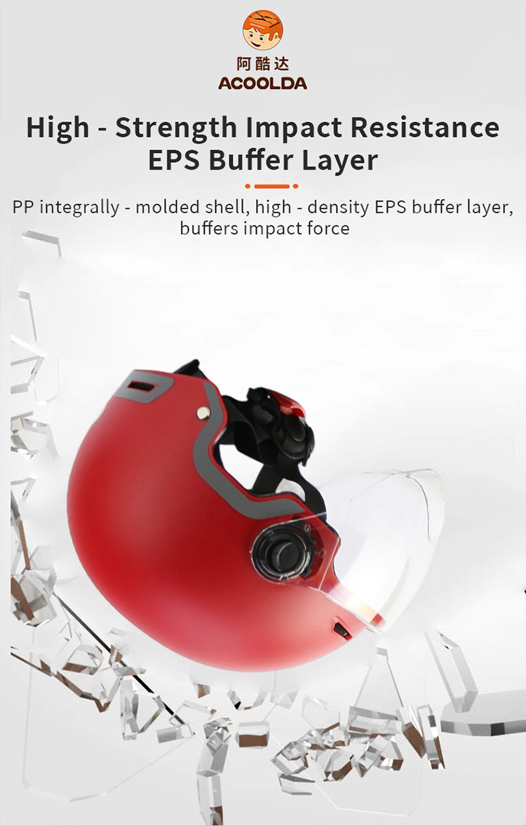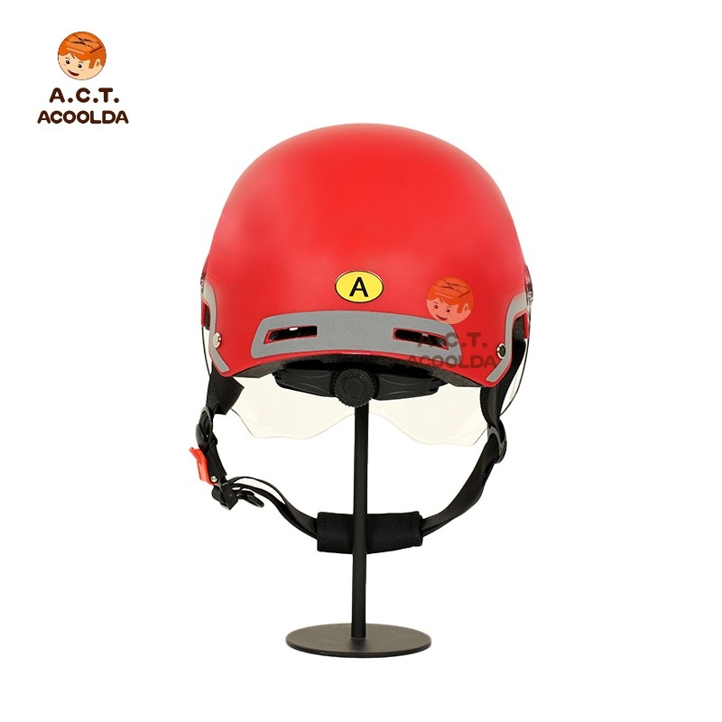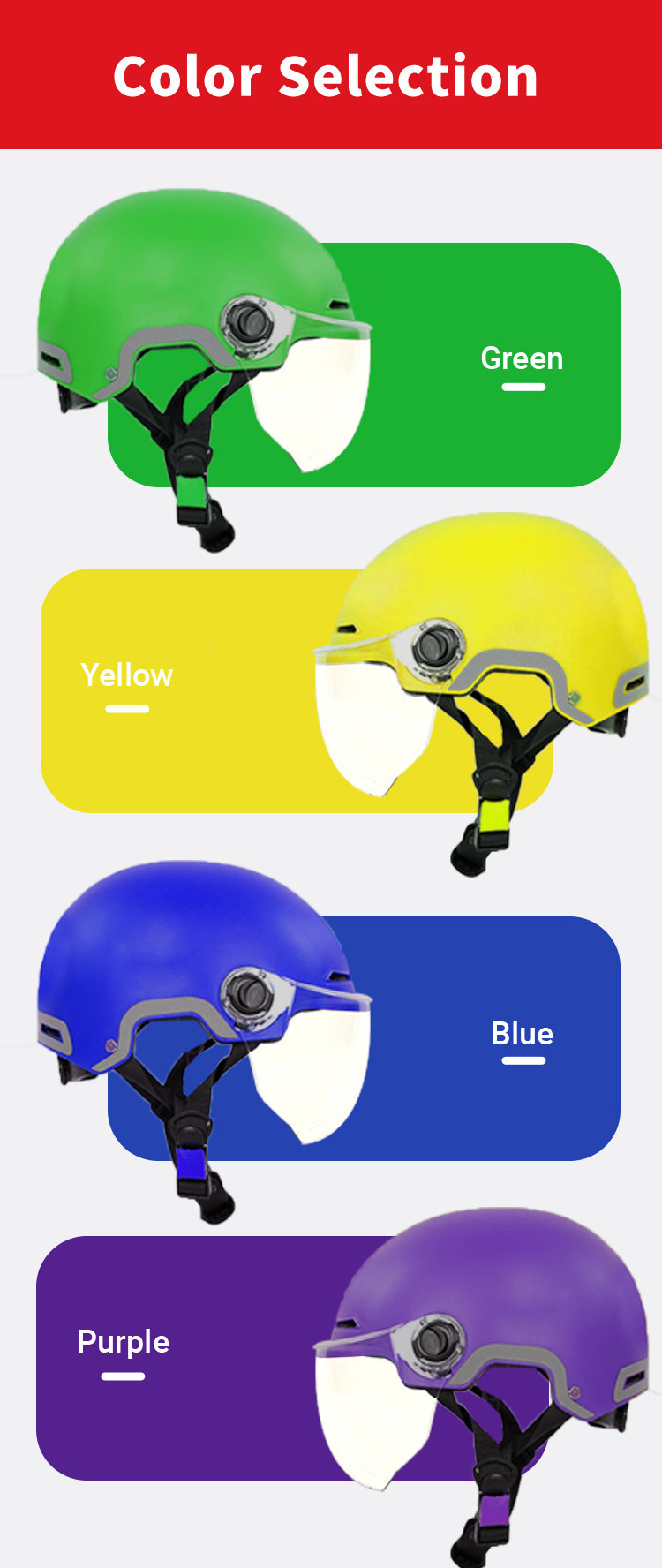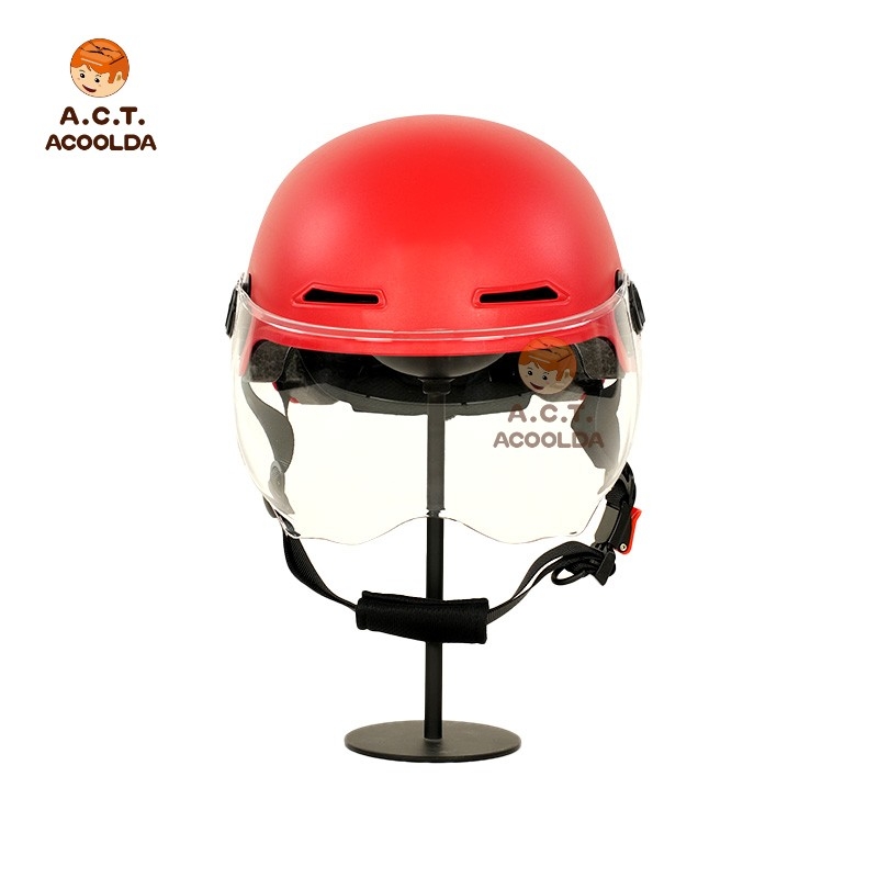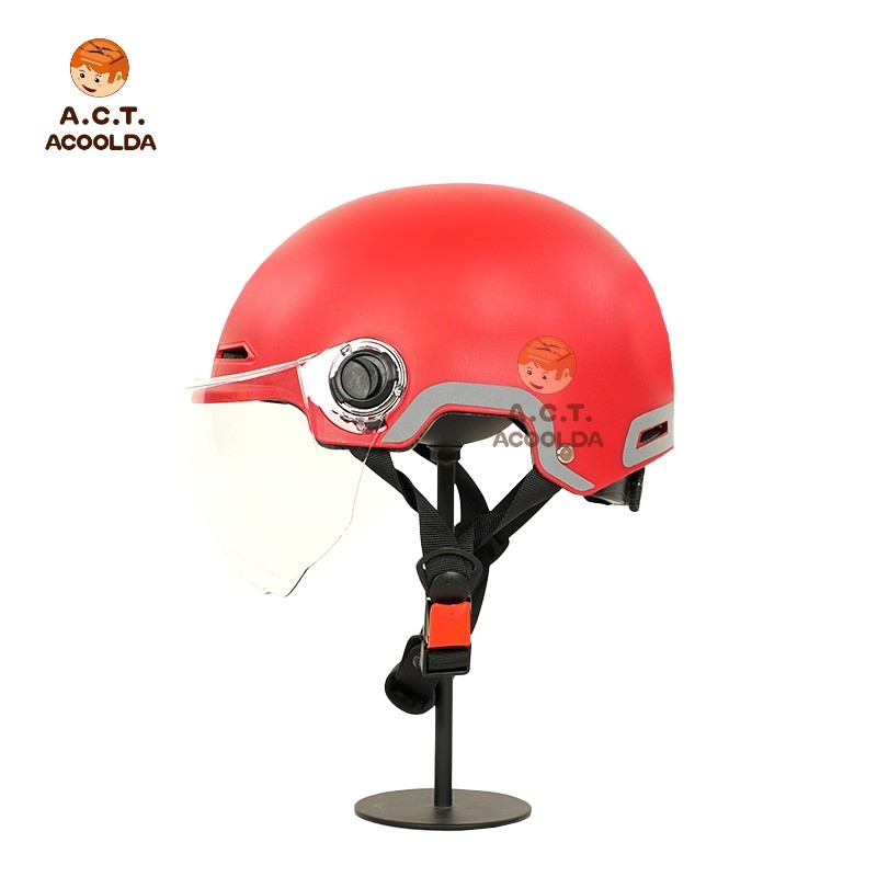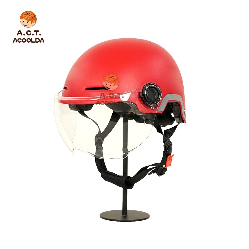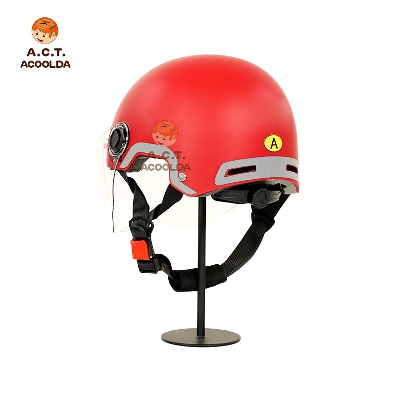 Helm setengah badan khusus dengan visor untuk pengantar makanan. Pesanan massal dengan pencetakan logo, pilihan warna, dan pengiriman cepat. Perlengkapan keselamatan bersertifikat ideal untuk armada kurir dan logistik.