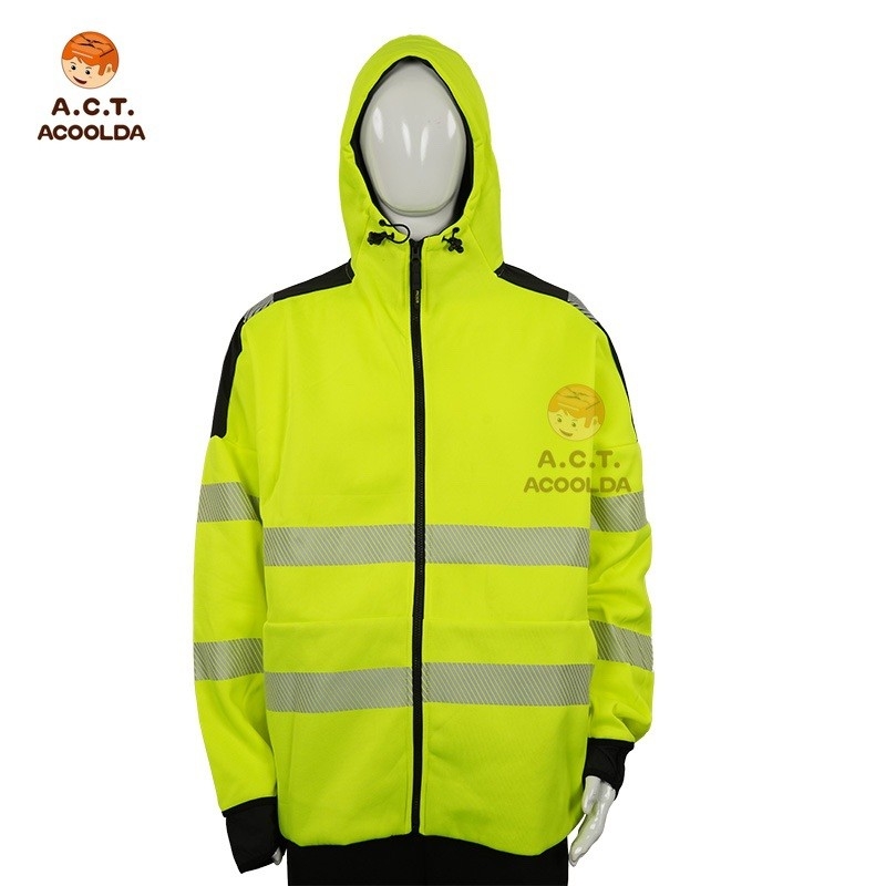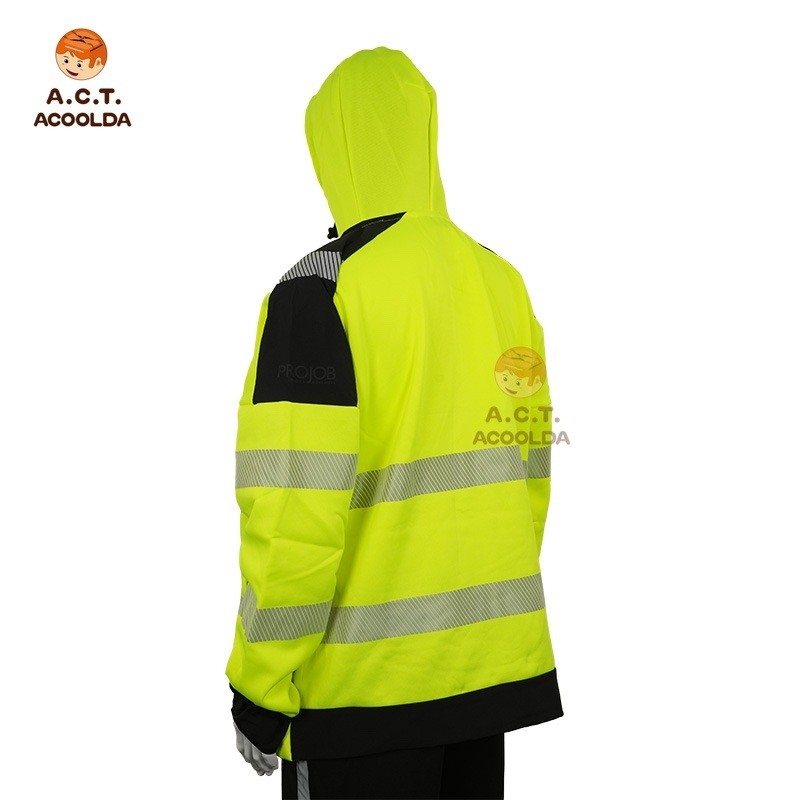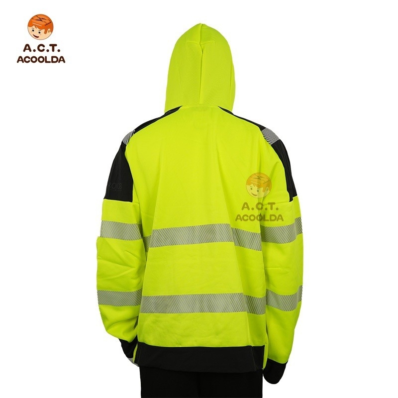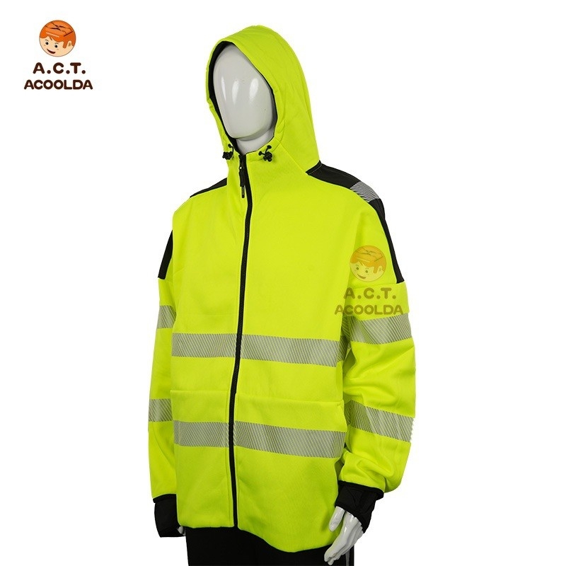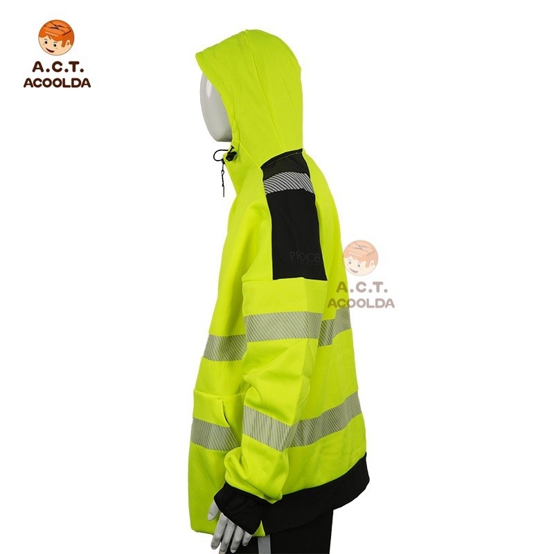 Jaket reflektif berkerudung tahan air ini sempurna untuk pengantar makanan, jasa kurir, dan staf logistik, menawarkan perlindungan dari hujan dan visibilitas di lingkungan minim cahaya. Desain berkerudungnya memastikan kenyamanan dan keamanan, sehingga praktis untuk pekerjaan luar ruangan.